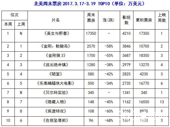 经历了周末的票房飙涨,今天(3月20日)中国内地电影市场回归正常。截至22:00,大盘报收5252万元。《美女与野兽》票房暴跌,今天仅收获3272万元,比昨天的9583万元暴跌65.8%!累计票房3.41亿元,和该片北美首周末1.735亿美元的票房相差甚远。