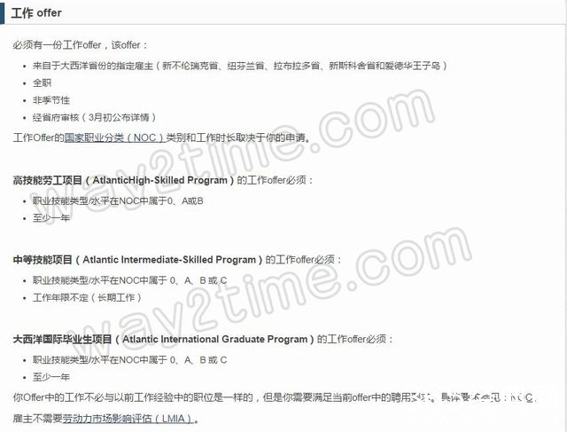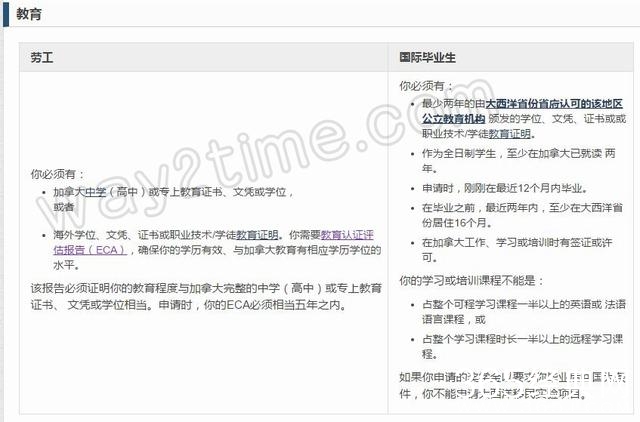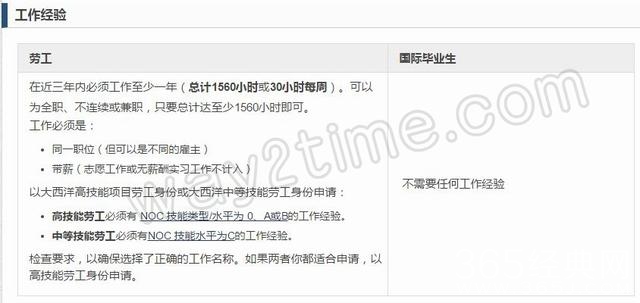 工作经验,教育以及工作offer的规定基于所申请时的身份(是劳工或国际毕业生)。其他要求相同。