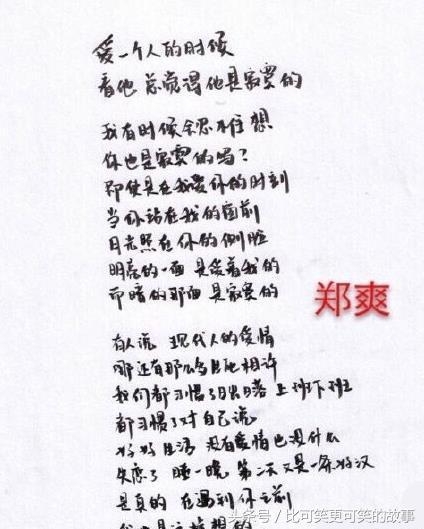 郑爽的字有点特别呢!和人一样可爱。