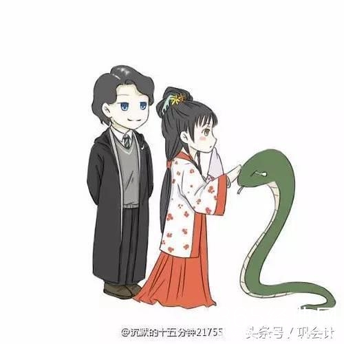 看了这么多,我发现同人作品里主要是拿伏地魔接触魂器之前、还没有变得面目全非的翩翩公子形象和林妹妹进行同框创作↓
