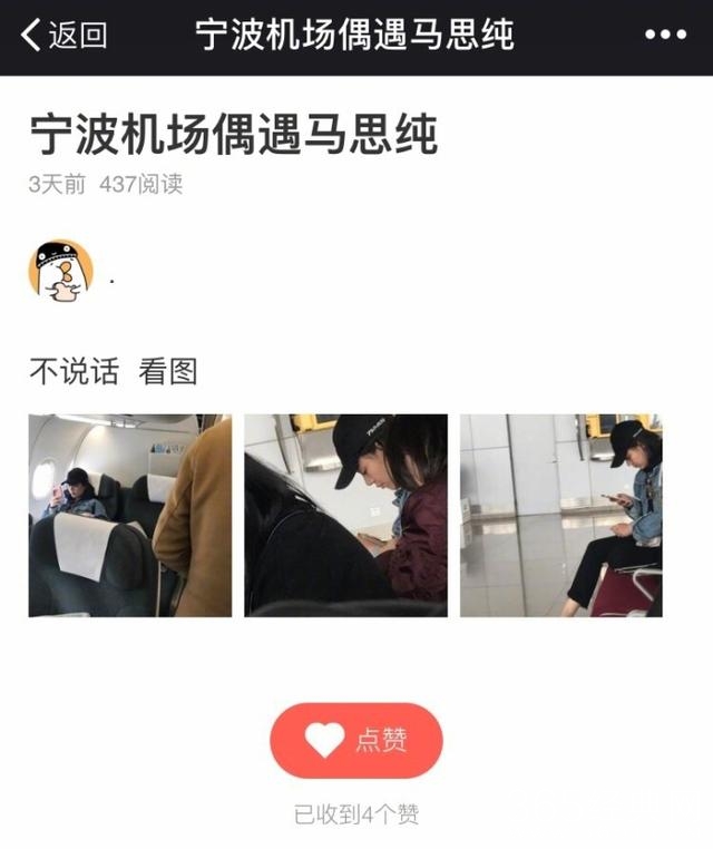 这不,近日有网友在飞机上偶遇素颜的马思纯。。