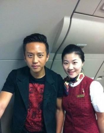 邓超的皮肤和空姐成了鲜明的比照。。↓