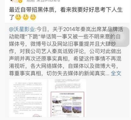 看到这张图片,有媒体称秦岚“耍大牌”,网友也基本全部都指责声,称“秦岚没长手”。甚至有激进的网友说她不配当艺人,喊她退出娱乐圈!被负面新闻缠身的秦岚也在微博发文调侃自己!