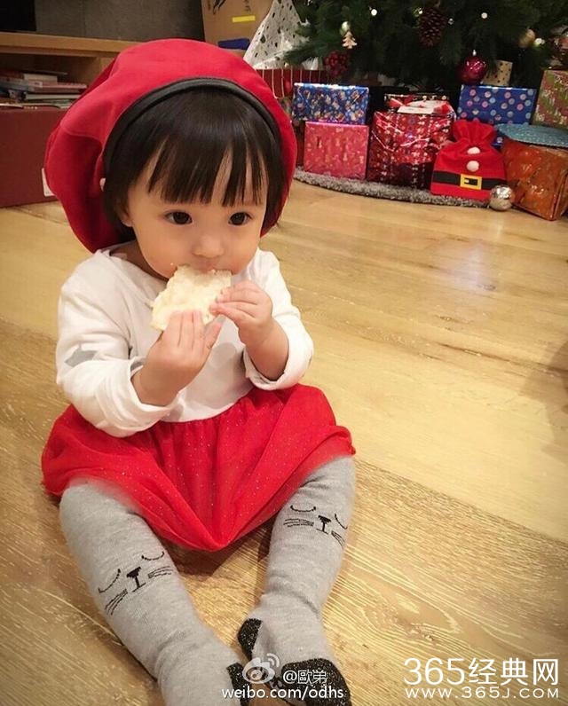 因为她圆溜溜的眼睛,真的超级萌。那会儿跟贾静雯女儿bubu一起合照,都没有输的宝宝可不多,欧弟的女儿要算一个。