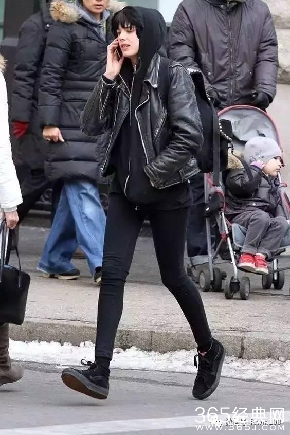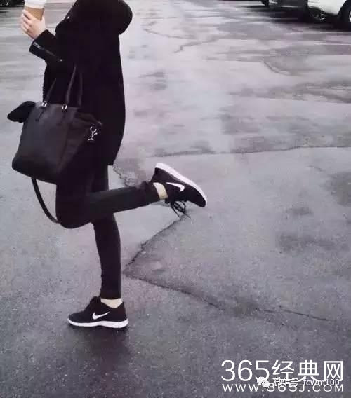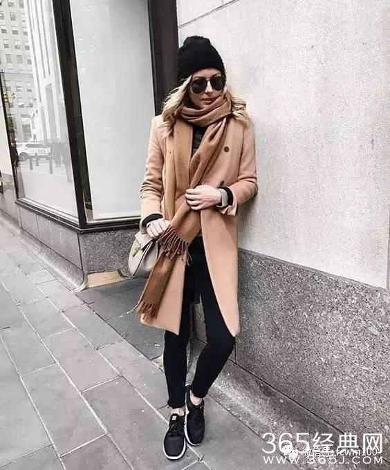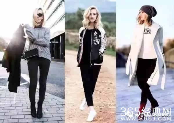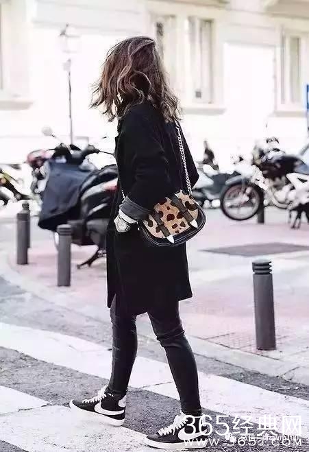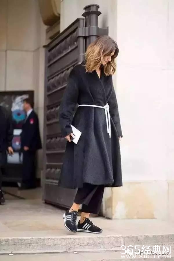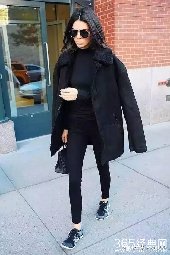 一双保暖又舒适的黑色运动鞋,搭配黑色铅笔裤或黑色阔腿裤,外面随便披件夹克或大衣就可以轻松出门了。