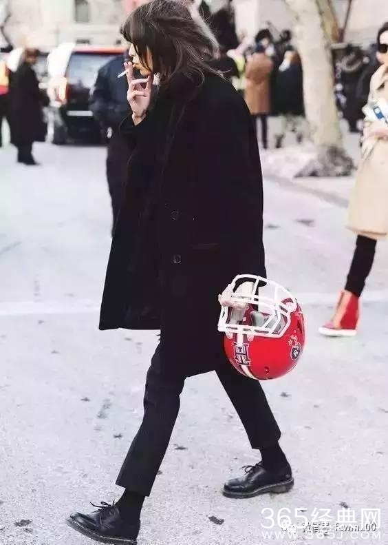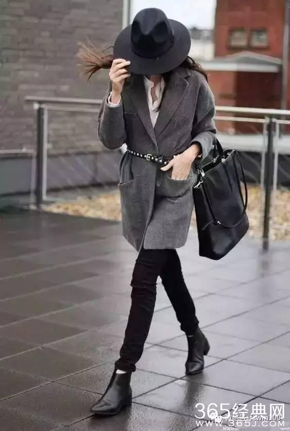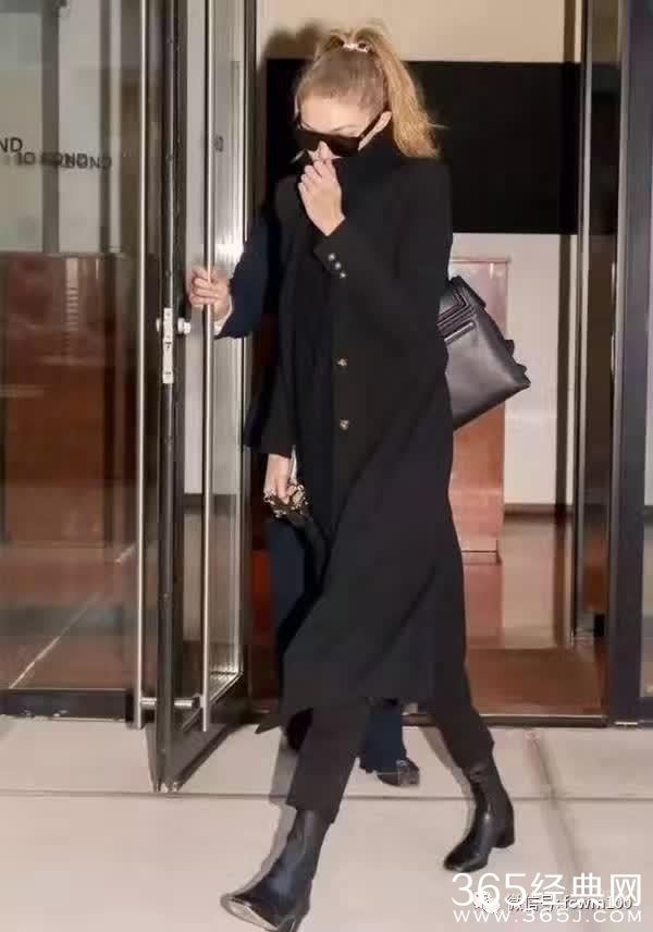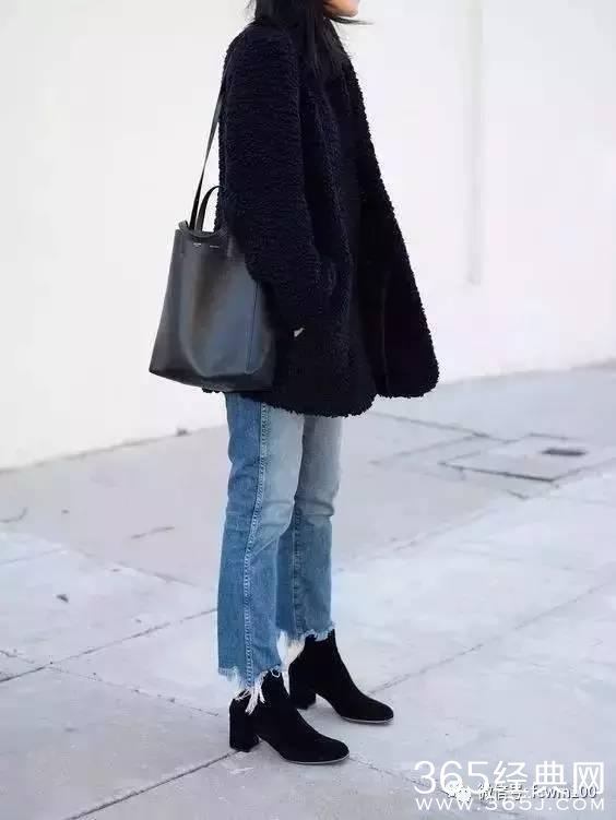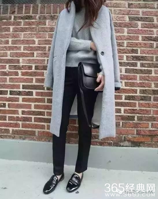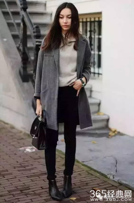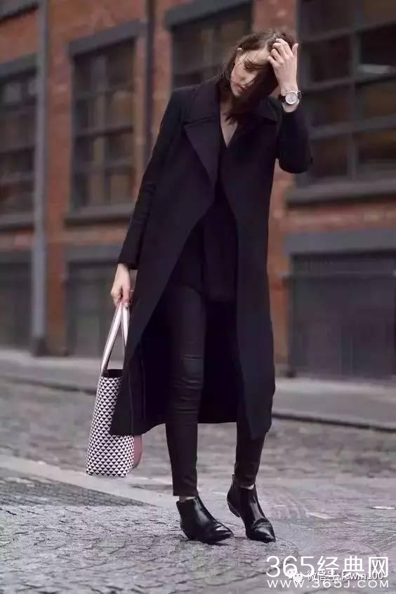 无论是黑色的单鞋还是靴子,只要搭配黑色长裤不仅更显瘦,而且从视觉上都有延伸腿长的效果▼