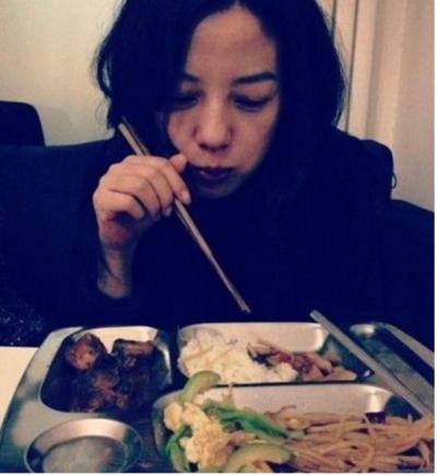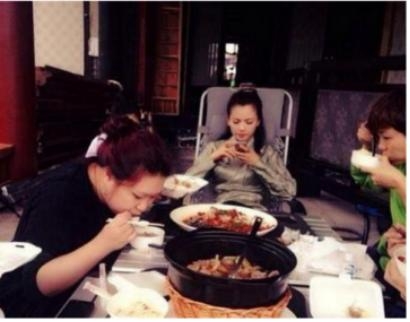 Baby这身打扮,应该是在拍《微微》吧,眼前丰盛的工作餐着实吸引人啊。(但baby好像只专注于玩游戏啊!)