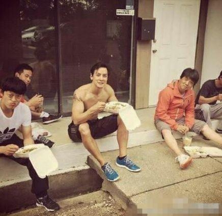 要说贴近生活,那还得是我们的吴彦祖,简单的盒饭就能解决,坐在地上就开吃,完全没有架子啊~ 那一身肌肉简直让人流口水了,光着膀子也能感受到那股帅气逼人。