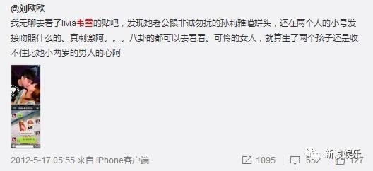 韦雪的老公被说是曝出了和其他女生的接吻照!话是说的挺犀利的,“就算生了两个孩子还是收不住比她小两岁的男人的心啊”