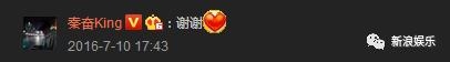 秦奋也在这条微博下留言了,不过只是一个很客气的“谢谢”。