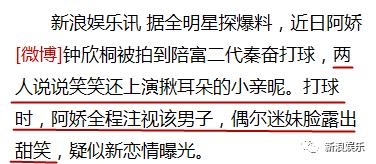 两个人是在打球的时候被拍到的,新闻上说阿娇是不是和男方上演小亲昵,时不时露出迷妹笑容……