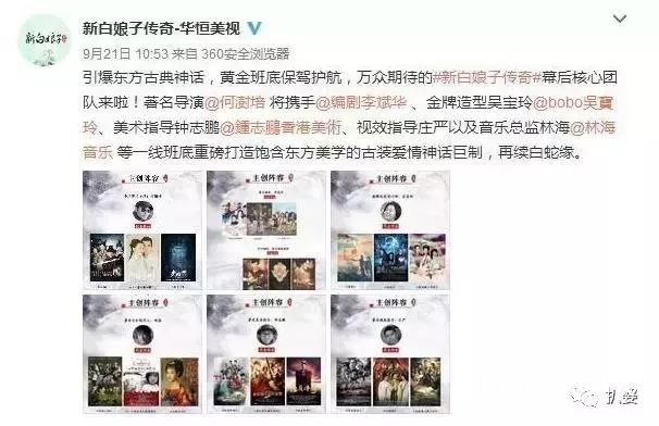还有一部即将开拍的是华恒美视出品的《新白娘子传奇》。