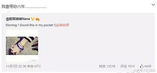 欧阳娜娜和崔始源互发微博,一个等两年,一个等6年。