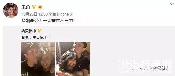 朱茵生日的时候在微博上大方晒两人的亲密合照