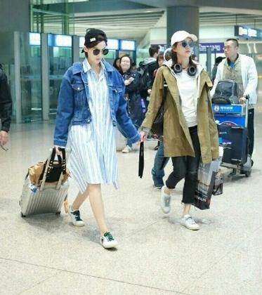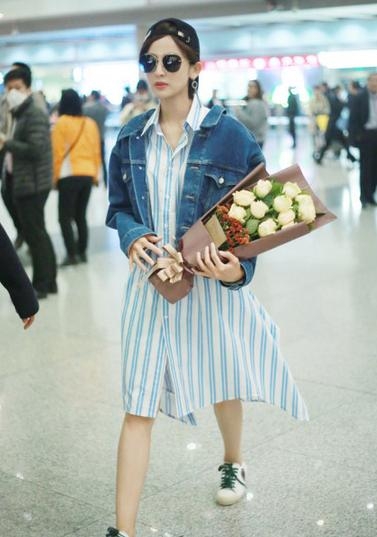只见她身穿长款竖条纹衬衫式长裙,小白鞋牛仔褂十分小清新;黑超遮面,反戴棒球帽酷劲十足,超有潮范!而且别小看娜扎这双鞋,美国官方售价4085元哦!