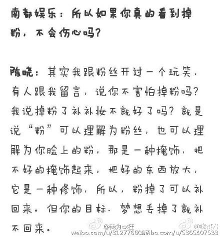 不过人家陈晓是这样描述掉粉这件事的。