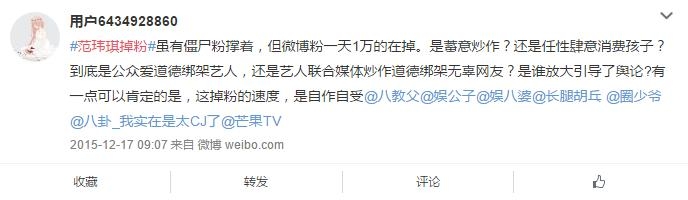 也有传闻是因为和张韶涵的矛盾?!什么!你还不知道,小编不必多说,大家百度吧。不过我们来看看网友怎么评价范玮琪掉粉。