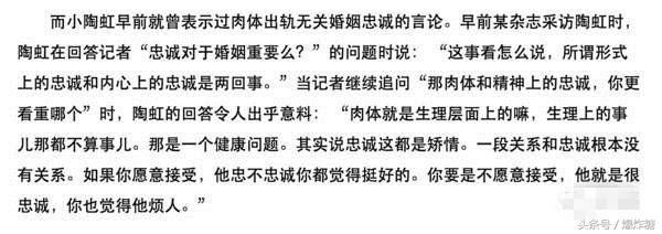 陶虹表示只要精神忠诚就行了,肉体都不是个事。
