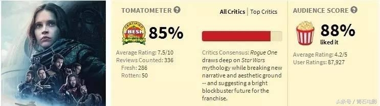 影评人为主的烂番茄口碑也不错,336位影人打分,新鲜度达到85%,爆米花指数88%