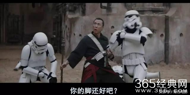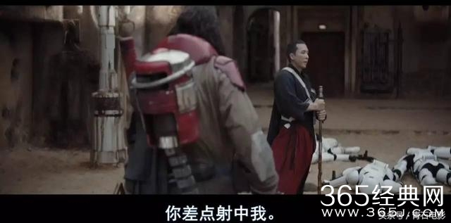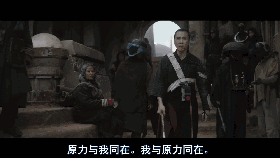 虽然片中没有明说,但这里可以看出甄子丹饰演的角色有个有原力的人,也可能是个受伤的绝地武士,身份极为神秘。