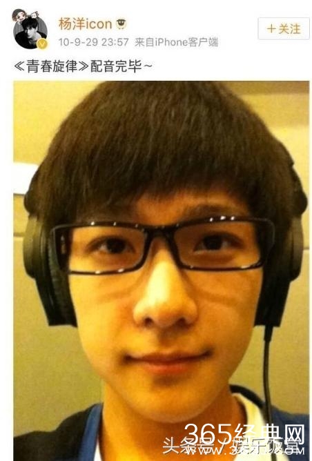 杨洋,2010年的杨洋还在配音《青春旋律》,当年带着黑框眼镜的杨洋还保留着一张青春的脸呢!