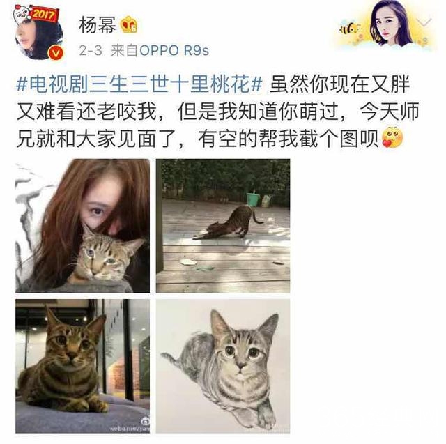大幂幂养的猫叫做“喜宝”。是几年前在拍片现场捡到的。这张照片是工作室发的.....重点到底该是这只猫呢....还是大幂幂的大长腿呢....