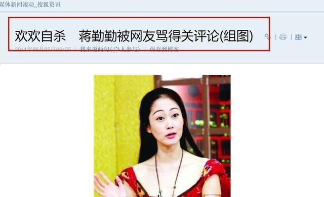 然而这还没完。欢欢抑郁自杀后,蒋勤勤的微博下面更是讨伐声一片。因为有网友觉得,欢欢之所以想不开轻生,跟她感情经历不顺有关,而第一次离婚时,对欢欢的打击也是悲剧的开始。
