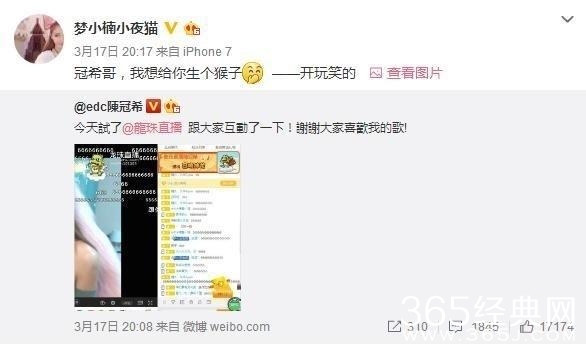 女主播还在微博上互动,直言要给陈冠希生猴子
