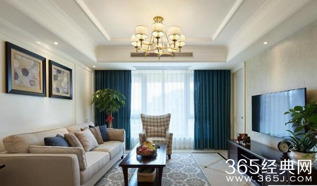客厅的吊灯灯火辉煌,米黄色的沙发看起来很温馨,实木的茶几和电视柜很有品质感。最喜欢这个大大的落地窗,透光性非常好,使屋里明亮又温暖。