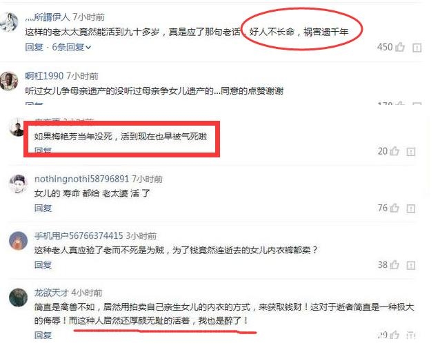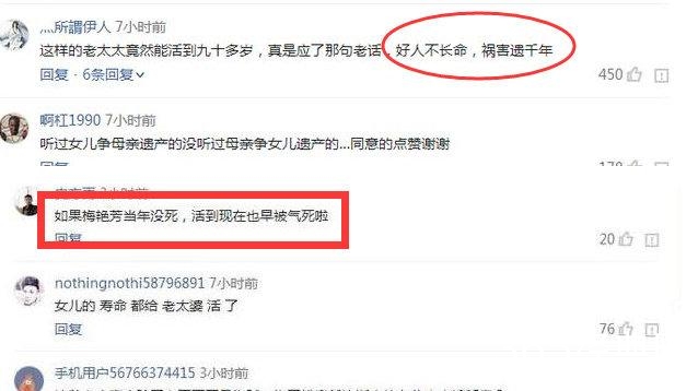 看到以上是不是很像骂梅艳芳的妈妈的,梅艳芳都逝去这么多年了,还要为了争夺女儿财产不惜所有。
