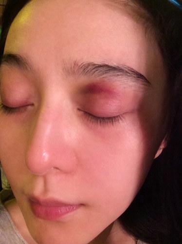 危险的戏也比较少用替身,亲自上的后果就是要承担受伤,眼睛就是被数倒下来给砸到了。