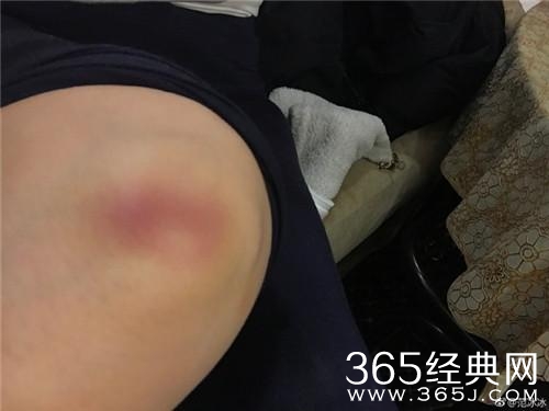 这还不止,去年范冰冰去录制真人秀的时候,也是手腕上受了伤,青一块紫一块的。