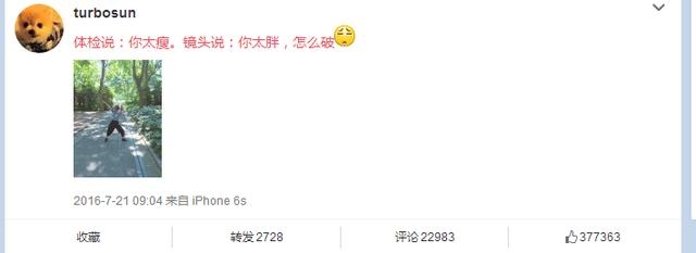 就拿”娘娘“孙俪来说,孙俪曾发过一条微博——体检说:你太瘦。镜头说:你太胖,怎么破