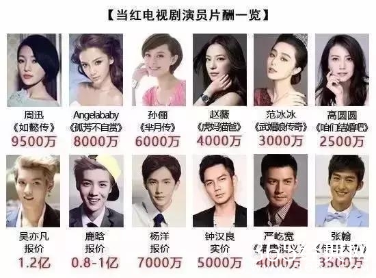 电视剧都以豪华演员阵容作为前期铺垫,电视剧中《幻城》《青云志》《九州天空城》《半妖倾城》《老九门》等以青春美颜为主打,霸占电视网络播出平台,在播出中,网友以及媒体对天价片酬的讨论及关注度已经远远超过作品内容、制作水准的讨论。在网络流传的现今当红演员片酬中,最低的2500万,最高已经过亿。而业内人士表示,流传的片酬与实际片酬相差无几,有的甚至现在还更高。