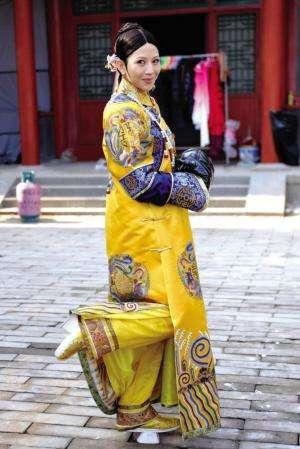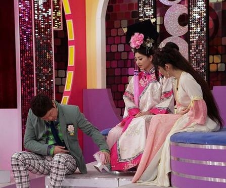 随着《甄嬛传》大火,斓曦也穿着清装上节目,一身古装坐在演播厅,感觉好穿越,一旁的男主持人忍不住坐了下来,好奇的看了看斓曦脚下的花盆鞋。