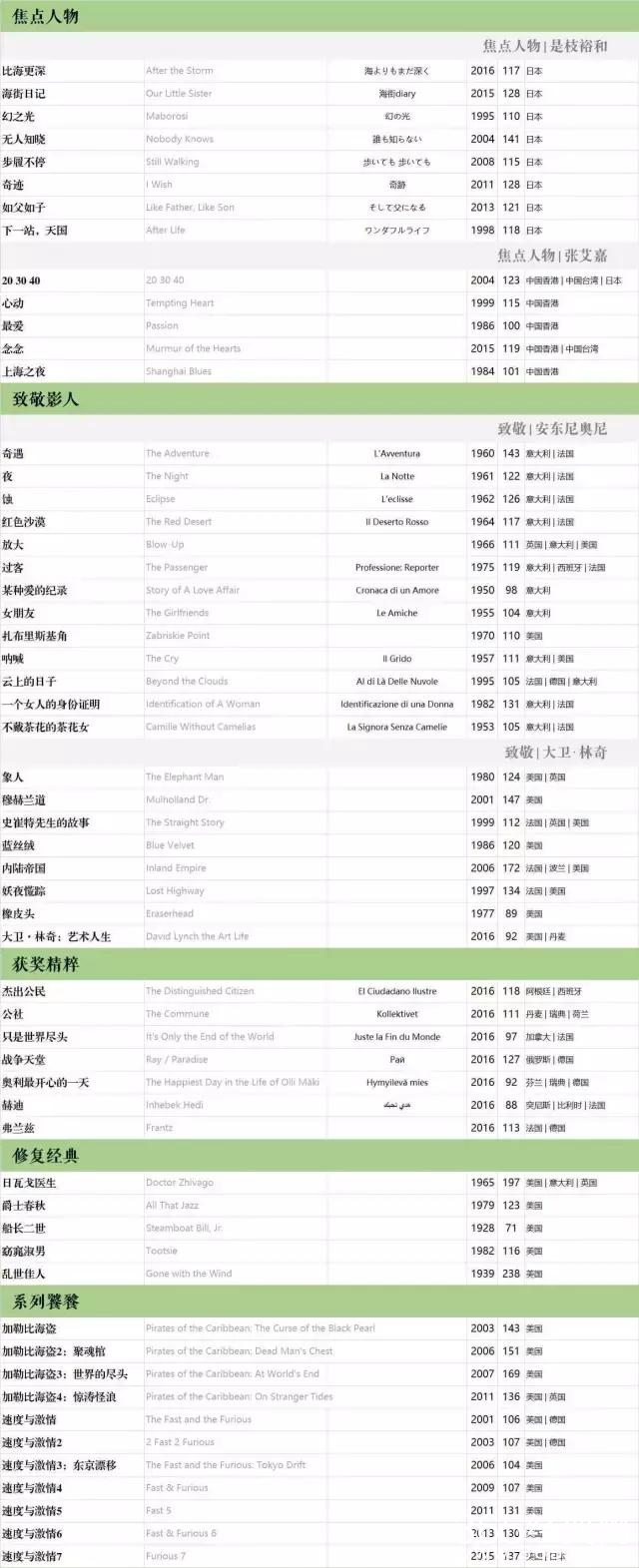 3月24日(明天)中午12:00起,会提前发售是枝裕和、安东尼奥尼的主题套票,还有少量《速度与激情》(1-7)系列套票。