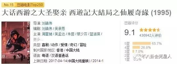 但他真是“第一人”吗?周星驰的《大话西游》不要太经典好不好?多年来各种解读分析,豆瓣9.1分的高分!