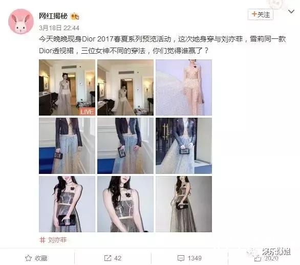 因为早前刘亦菲去巴黎看秀时也穿了这条裙子,有人就拿两个人作比较