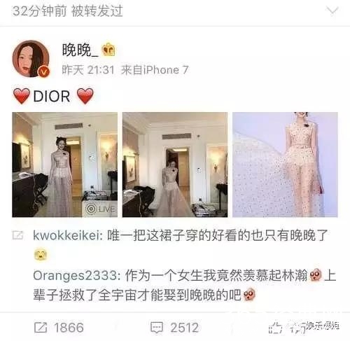 近日,网红晚晚参加某品牌的活动人气大涨。皆因穿了一条dior的裙子。