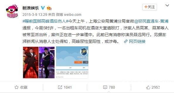 可是在2015年3月9日,前国脚高峰酒后伤人被警察拘留,而为朋友出头的聂远也因此一同被带走。