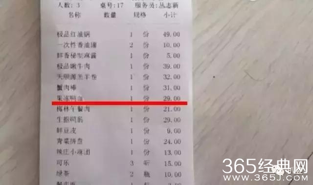 据小作坊负责任说,有时候会送点真鸭血,有时候送牛血,但餐厅签单时让他们都开成鸭血的票据。