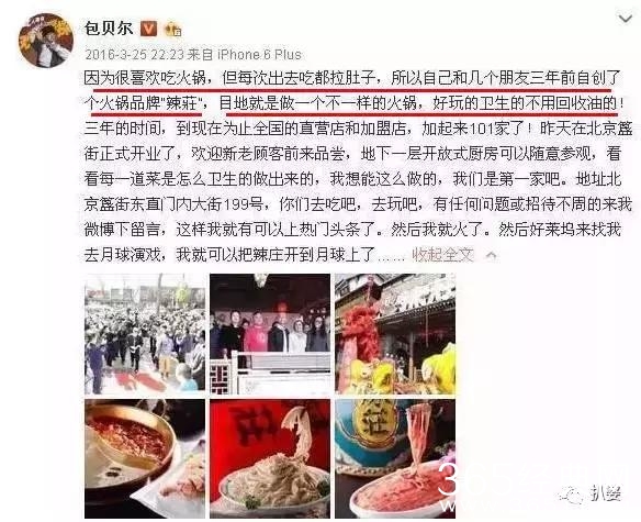 他曾经发微博义正词严的说自己做火锅店不是为了钱,是为了让大众能吃到不一样的火锅,干净的火锅。