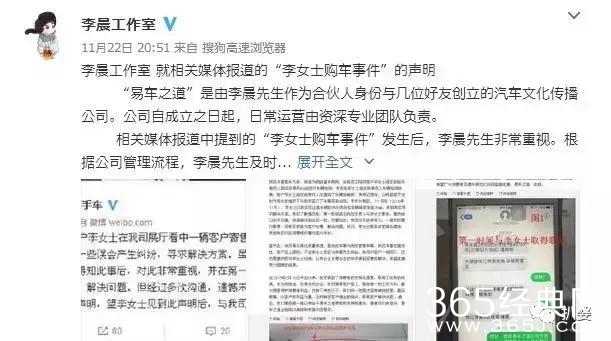 比如李晨和朋友开过车店,结果卖涉水车被投诉了。