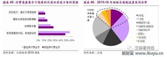 2015年电视剧网络点击量高达3771.82亿次,其中新版权剧点击量达2136.84亿次,占当年新剧的88.6%;版权剧仍为吸引用户的主要内容。网络剧总流量也从2014年123亿攀升至2016年892亿。随着视频广告与付费潜力将迎来加速释放,视频平台加大版权与自制内容支出的趋势将持续。