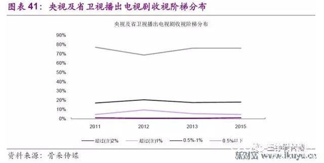 2、上星卫视近年收视率在1%以上剧目年均40部以下。