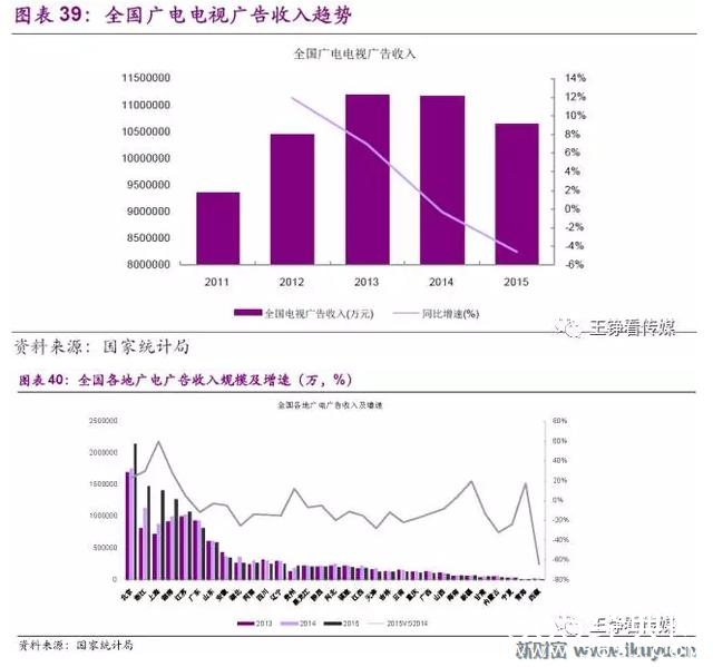 受移动视频崛起冲击,2015年以来国内广电电视广告收入已趋于下滑。分地区而言,除了北京、浙江、上海、湖南、江苏五省或直辖市在2015年仍维持广告收入正增长,其余地区普遍下滑。电视剧在电视台渠道的销售,仅有几大龙头广电集团仍具备增加预算的购买力。