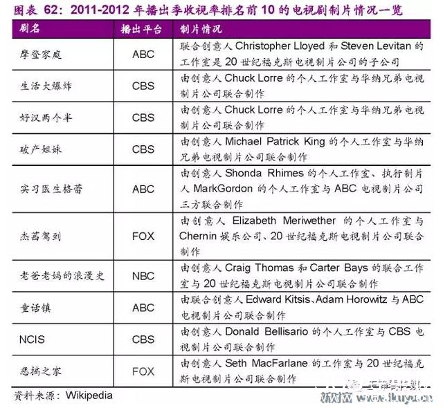3、海外:大公司主导高收视剧,优质美剧好莱坞造