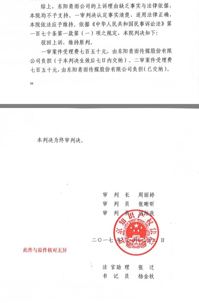 3月22日,北京知识产权法院公布了青雨传媒与乐视视频关于电视剧《猎场》版权纠纷案的终审判决结果:东阳青雨传媒公司的上诉理由缺乏事实与法律依据,故驳回上诉,维持原判,即乐视视频胜诉,依然拥有电视剧《猎场》的独占专有信息网络传播权。至此,让影视行业哗然的电视剧《猎场》版权纠纷案终于尘埃落定。