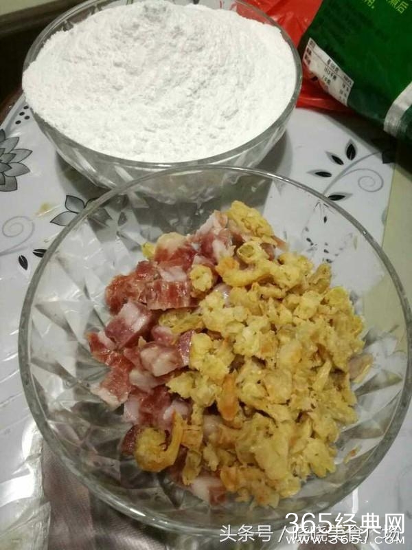 炒过的芋头虾米腊肠倒入水粉中