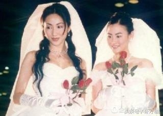黎姿与张柏芝穿婚纱同台,但是这样的同台的同框出现的画面是少之又少,据说两个人的关系一直不是很好,当时刚出道的张柏芝都在说她张的美,但是张柏芝说她认为黎姿比自己长的更美;